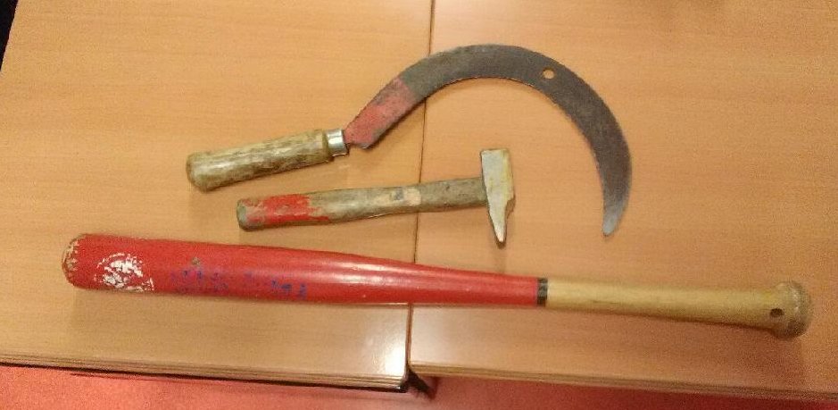 Серп и молот стал чуть ли не одним из символов протеста. Такие реальные орудия, как утверждает полиция, изымали у демонстрантов. Источник фото: Twitter Aurélie Sarrot