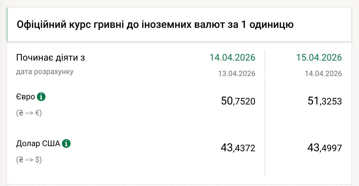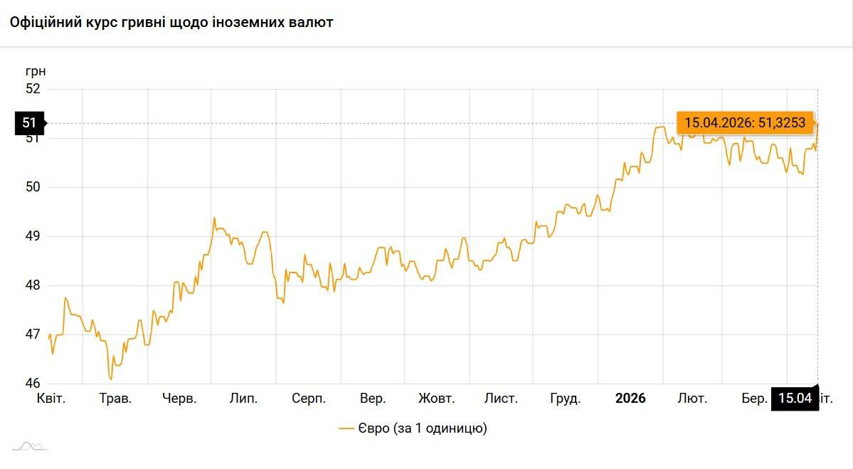 По итогам сегодняшних валютных торгов Национальный банк Украины (НБУ) поднял официальный курс евро со вчерашних 50,7520 грн/€ до 51,3253 грн/€ - это новый исторический максимум. Предыдущий на уровне 51,2577 грн/€ фиксировался еще 19 февраля 2026 года.
