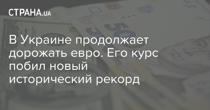 В Украине продолжает дорожать евро. Его курс побил новый исторический рекорд