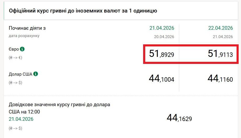Сильнее всего на удорожание евровалюты в Украине влияет повышение курса гривны к доллару, через который пересчитываю евро. НБУ поднял свой официальный курс с 44,1004 грн/$ до 44,1160 грн/$.