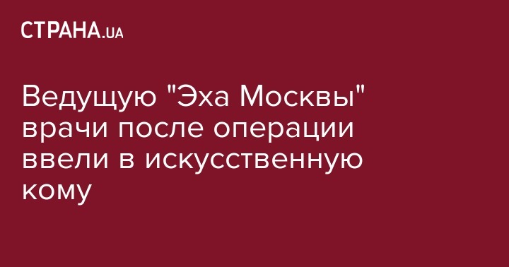 Ведущую "Эха Москвы" врачи после операции ввели в искусственную кому