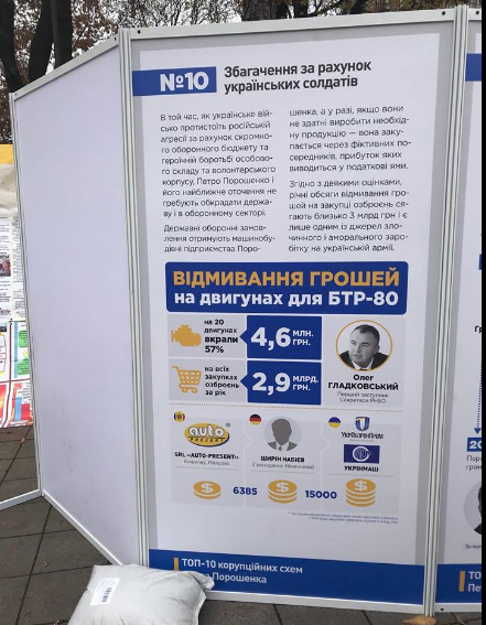 В воскресенье, 29 октября, на МихоМайдане под Верховной Радой активисты поставили стенды с информацией о коррупционных схемах и связях президента Петра Порошенко. Об этом с места событий сообщает корреспондент "Страны".