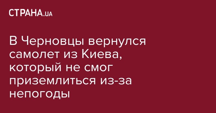 Сегодня утром в Черновцы прилетел самолет рейса "Киев-Черновцы", который накануне из-за непогоды не смог сесть на посадочной полосе аэропорта "Черновцы" и вернулся обратно в столицу.
