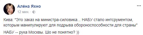 Алена Яхно, журналист: "Кива: "Это заказ на министра-силовика... НАБУ стало интсрументом, которым манипулируют для подрыва обороноспособности для страны". НАБУ - рука Москвы. Шо не понятно?"