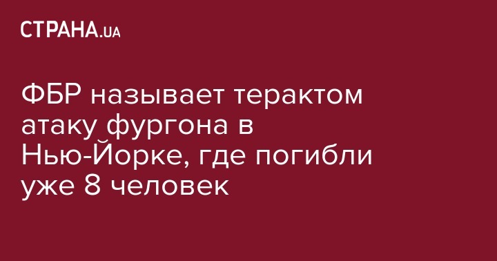 ФБР называет терактом атаку фургона в Нью-Йорке, где погибли уже 8 человек