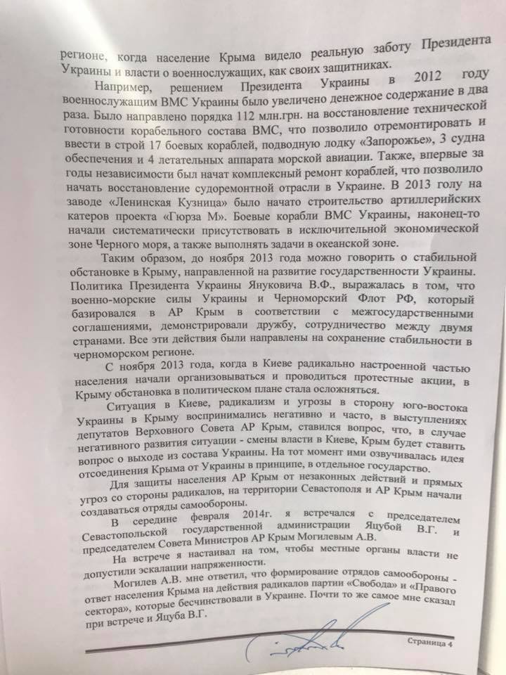 Кроме того, как говорится в показаниях, в марте 2014 года экс-министр обороны Игорь Тенюх запретил выход украинских кораблей в море, что впоследствии привело к их захвату военными Российской Федерации.