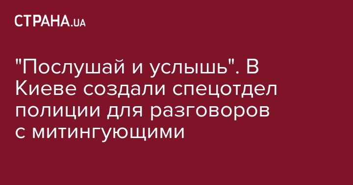 В Киеве заработала полиция диалога "послушай и услышь". В пресс-службе поясняют, что новый отдел будет налаживать общение с организаторами массовых мероприятий, чтобы избежать конфликтов, передает "Интерфакс-Украина".