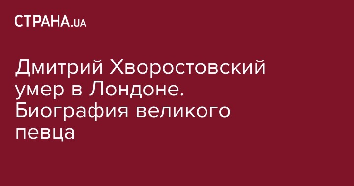 Сегодня в Лондоне скончался Дмитрий Хворостовский - знаменитый оперный певец.