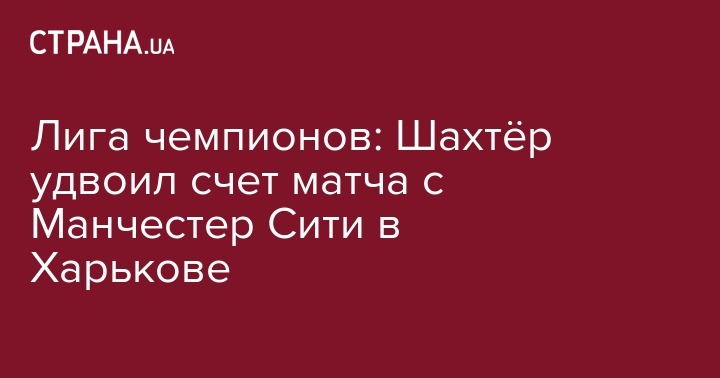 Донецкий "Шахтёр" удвоил счет в решающем матче Лиги чемпионов с английским "Манчестер Сити", что проходит в Харькове.