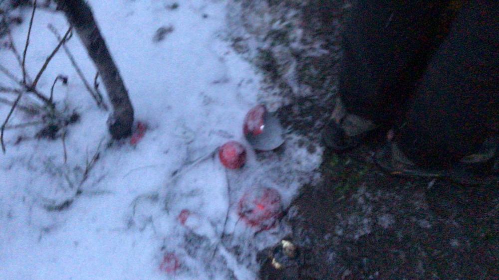 Как сообщает корреспондент "Страны", ранее активисты побили елочные игрушки на елке перед магазином.