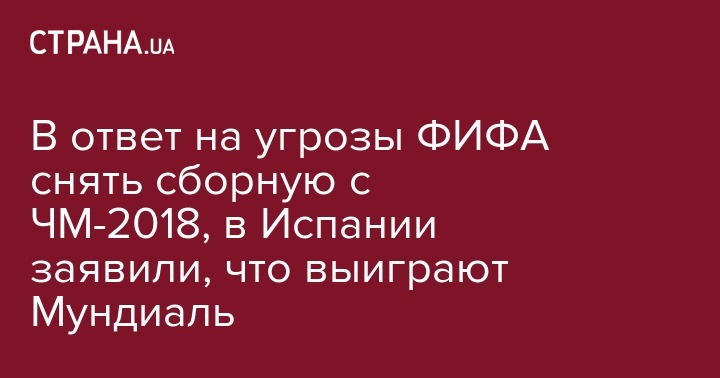 В ответ на угрозы ФИФА снять сборную с ЧМ-2018, в Испании заявили, что выиграют Мундиаль