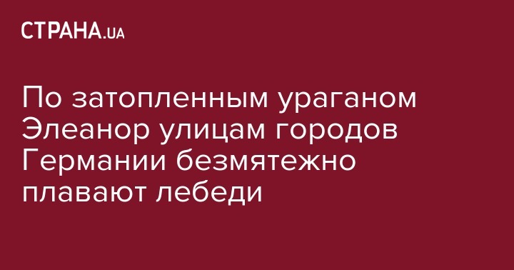 По затопленным ураганом Элеанор улицам городов Германии безмятежно плавают лебеди