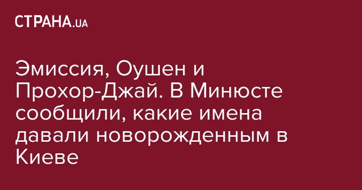 Эмиссия, Оушен и Прохор-Джай. В Минюсте сообщили, какие имена давали новорожденным в Киеве