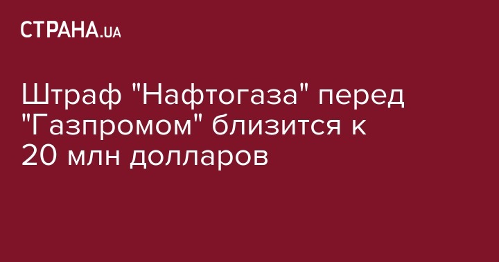 Штраф за неуплату Национальной акционерной компанией "Нафтогаз Украины" российской компании "Газпром" доплаты за поставки газа по решению Стокгольмского арбитража за месяц достиг почти $20 миллионов. Об этом сообщают "Украинские новости".