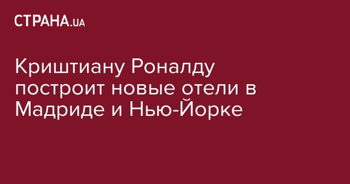 Криштиану Роналду построит новые отели в Мадриде и Нью-Йорке