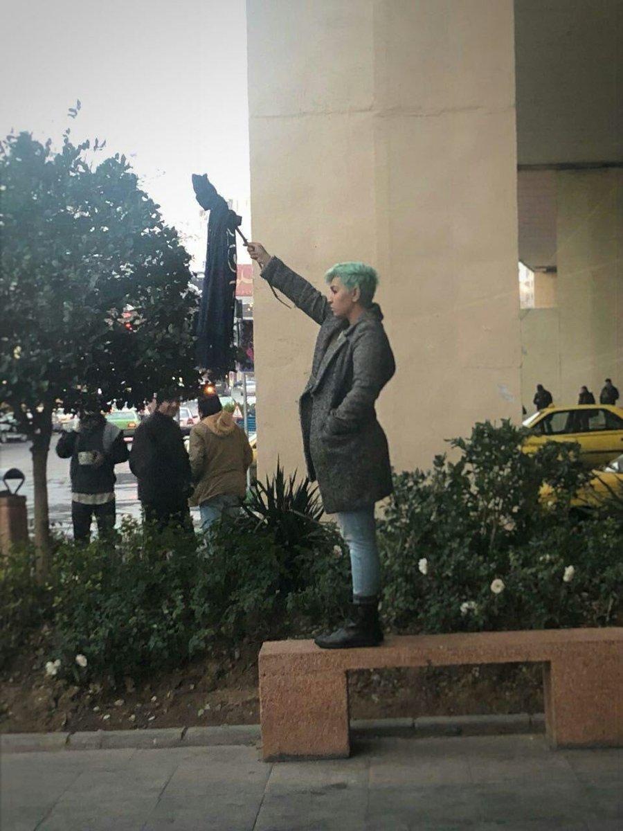 27 декабря женщина взобралась с распущенными волосами на будку на проспекте Энгелаб в Тегеране, размахивая платком словно флагом. Ее фотографии и видео широко разошлись в социальных сетях.
