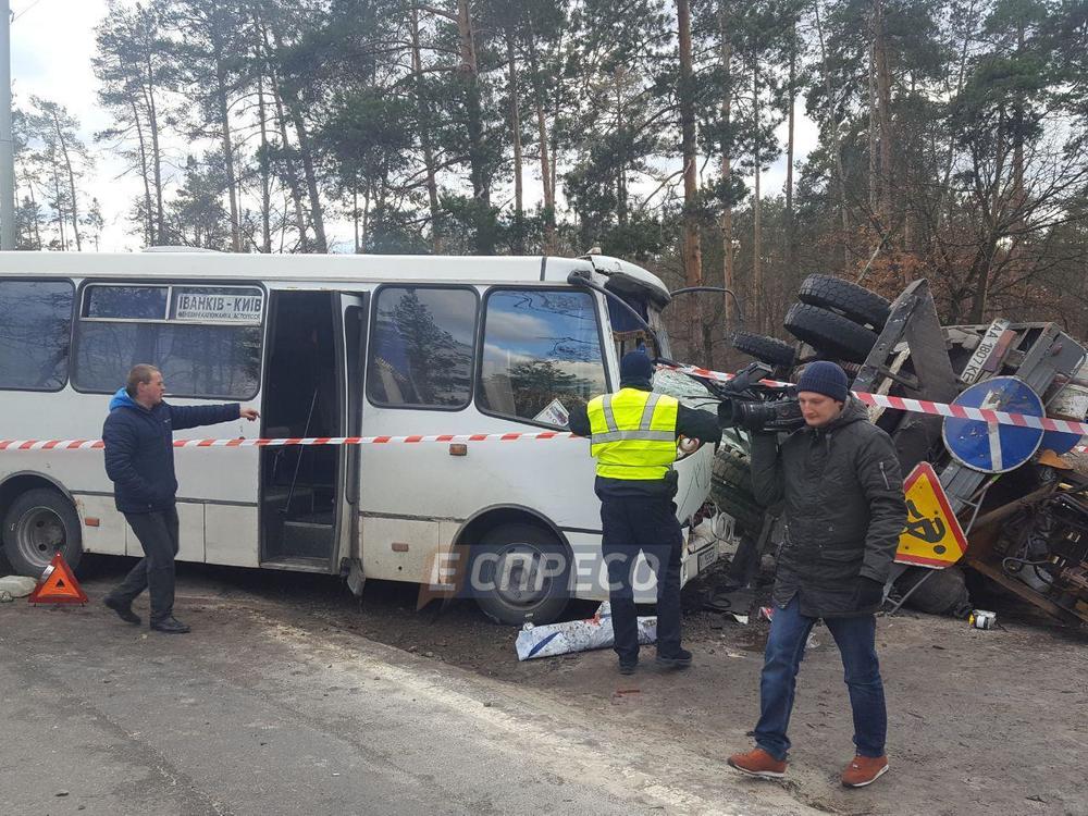 На выезде из Киева маршрутка с пассажирами врезалась в грузовик и перевернула его
