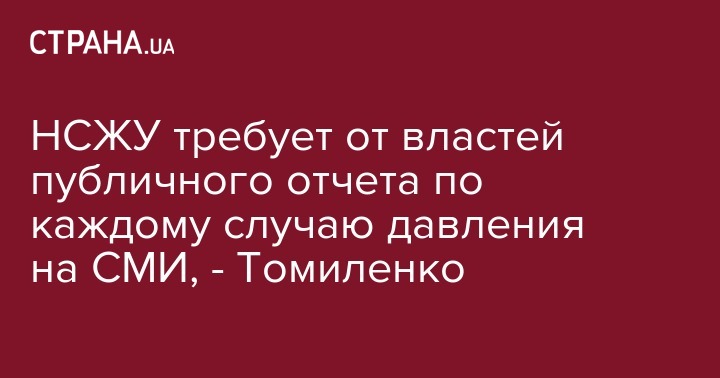 НСЖУ требует от властей публичного отчета по каждому случаю давления на СМИ, - Томиленко