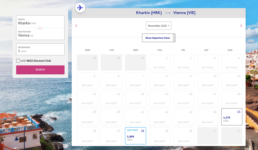Билеты в продаже с 25 ноября 2018 года Фото: wizzair.com
