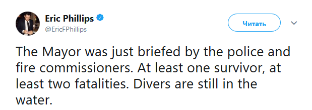 "По меньшей мере один человек выжил, не менее двух погибли",— написал в Twitter Эрик Филипс.