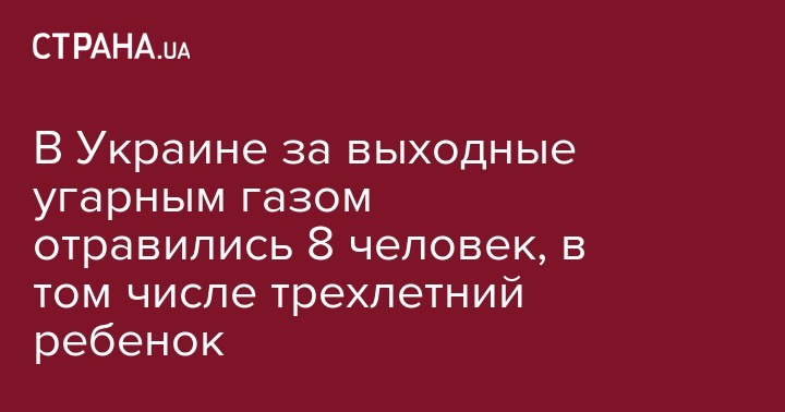 В Украине за выходные угарным газом отравились 8 человек, в том числе трехлетний ребенок