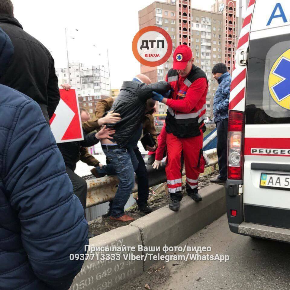 На Троещине Toyota упала с автокольца в кювет, водитель в больнице. Фото