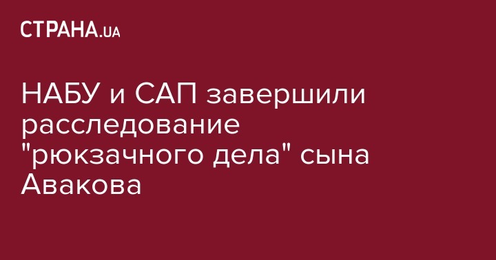 НАБУ и САП завершили расследование "рюкзачного дела" сына Авакова