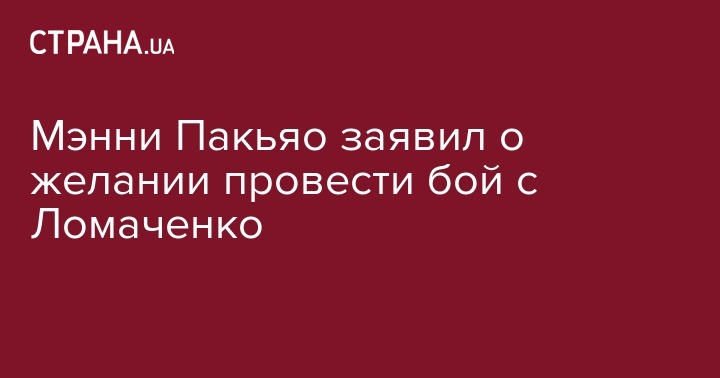Мэнни Пакьяо заявил о желании провести бой с Ломаченко