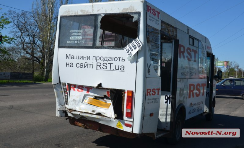 В Николаеве маршрутка с нетрезвым водителем за рулем врезалась в другую маршрутку полную пассажиров.