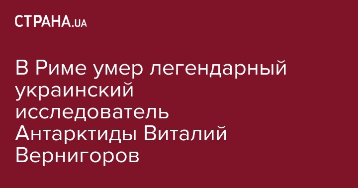 В среду, 25 апреля, в Риме умер известный украинский геолог и исследователь Антарктиды Виталий Вернигоров. 69-летний ученый возвращался на Родину после двухнедельной антарктической экспедиции.