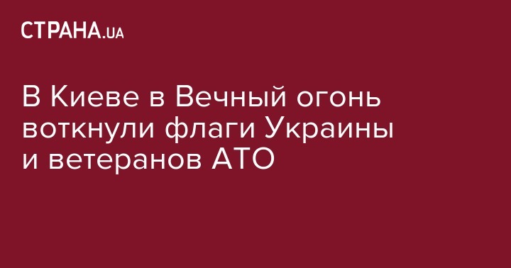 В Киеве в Вечный огонь воткнули флаги Украины и ветеранов АТО