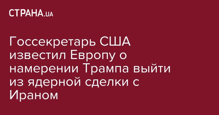 Госсекретарь США известил Европу о намерении Трампа выйти из ядерной сделки с Ираном