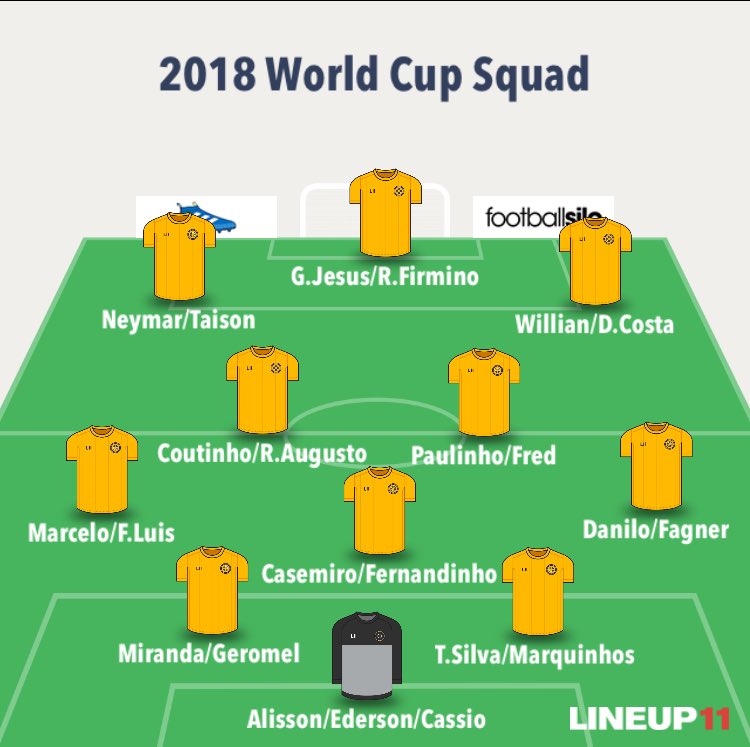 Вратари: Алиссон Беккер ("Рома"), Эдерсон Сантана ("Манчестер Сити"), Кассио ("Коринтианс").