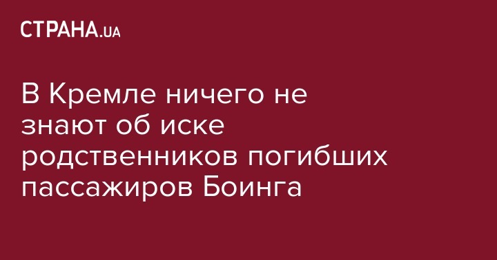 В Кремле не подтвердили сообщения СМИ о том, что родственники нескольких пассажиров малазийского Boing, который разбился в небе над Украиной в 2014 году, направили иск в Европейский суд по правам человека против России и ее президента.