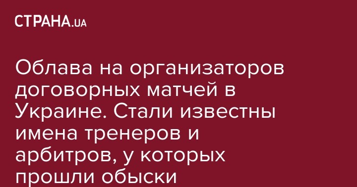 Облава на организаторов договорных матчей в Украине. Стали известны имена тренеров и арбитров, у которых прошли обыски