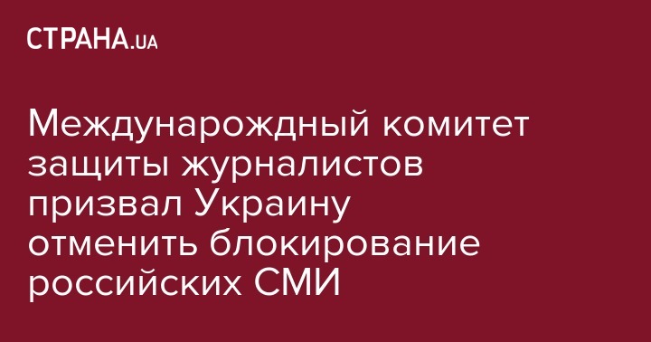Международный комитет защиты журналистов (CPJ) со штаб-квартирой в Нью-Йорке призвал Украину отменить все запреты в отношении российских медиа. Такое заявление обнародовано на сайте ведомства.