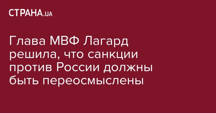 Глава МВФ Лагард решила, что санкции против России должны быть переосмыслены