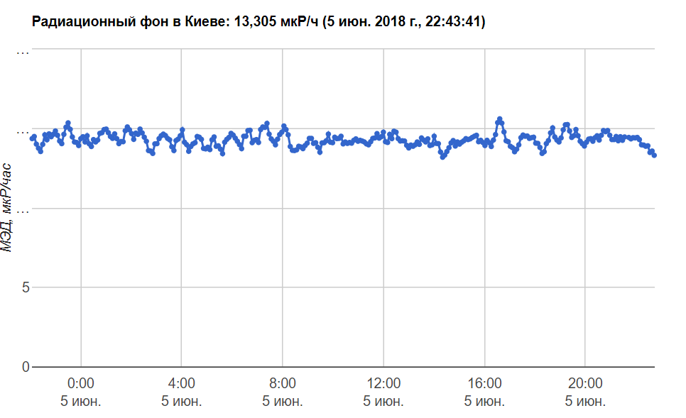 Так, к 17:00 вторника, 5 мая в Киеве сообщалось о 10 микрорентген в час. А в уже в 21:00 руководитель ГосЧС заявил о 12-ти мкР/час.