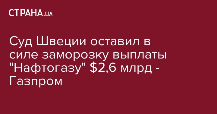 Суд Швеции поддержал "Газпром" в споре с "Нафтогазом" и оставил в силе свой приказ о приостановлении исполнения решения Стокгольмского арбитража о выплате россиянами Украине $2,6 млрд в рамках контракта на транзит газа через территорию Украины.