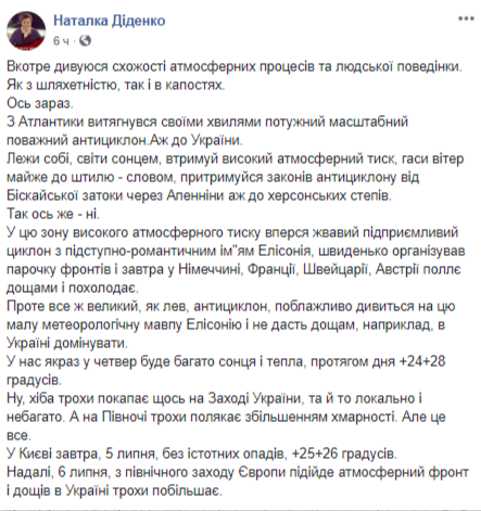 Однако антициклон все же мощнее. Однако, по словам Диденко, в Украине дожди доминировать не будут.