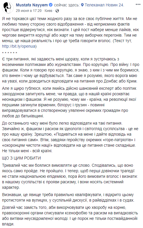 После убийства рома во Львове Найем сказал, что в беседах с иностранными журналистами его все чаще спрашивают о фашизме в Украине.
