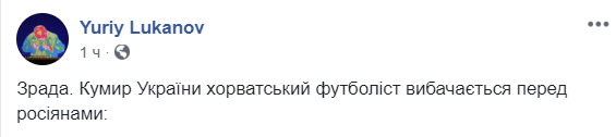 "Зрада. Кумир Украины, хорватский футболист извиняется перед россиянами", - удрученно пишет журналист Юрий Луканов. Похожие комментарии звучат и от других новоявленных фанатов Хорватии.