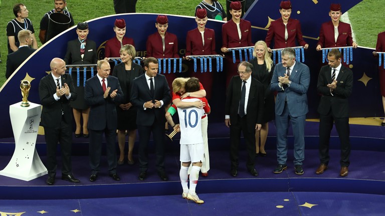 Для хорватов ЧМ-2018 окончился также невероятно. Вот, например, Ракитич радостно поздравляет капитана: