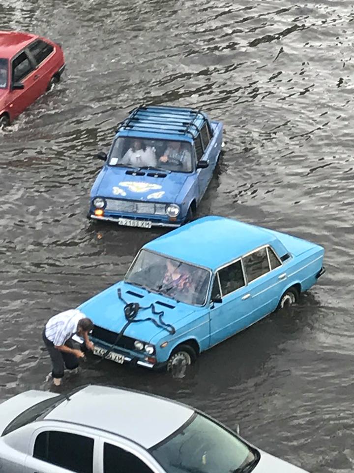 Кое-где вода доходила людям по колено. И смывала даже номерные знаки на машинах. Пользователи социальных сетей в шутку называли свой город "Хмельнеция".
