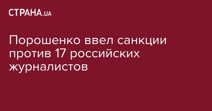 Президент Украины Петр Порошенко одобрил решение Совета национальной безопасности о введении индивидуальных санкций в отношении российских журналистов, замеченных в пропаганде. Об этом сообщает пресс-служба главы государства.