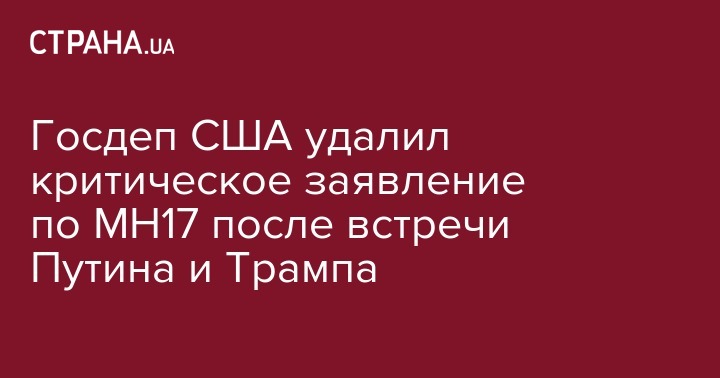 Госдеп США удалил критическое заявление по МН17 после встречи Путина и Трампа