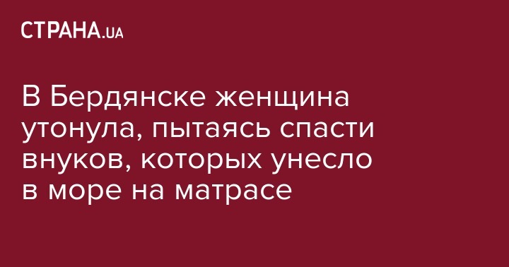 В Бердянске женщина утонула, пытаясь спасти внуков, которых унесло в море на матрасе