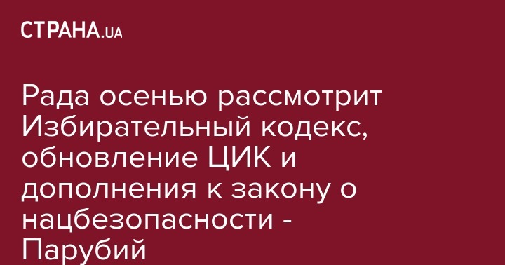 Рада осенью рассмотрит Избирательный кодекс, обновление ЦИК и дополнения к закону о нацбезопасности - Парубий