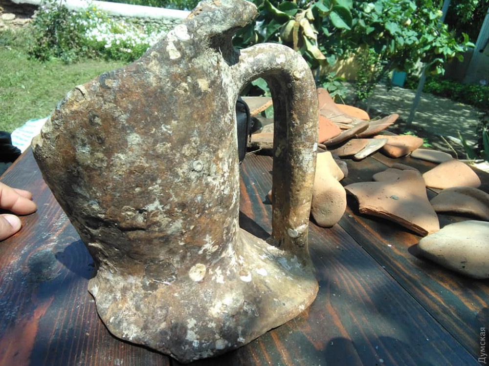 По его словам, археологические находки обнаружил местный дайвер из села Приморское. Среди находок выделяется крупный фрагмент хиосской пухлогорлой амфоры V века до нашей эры.