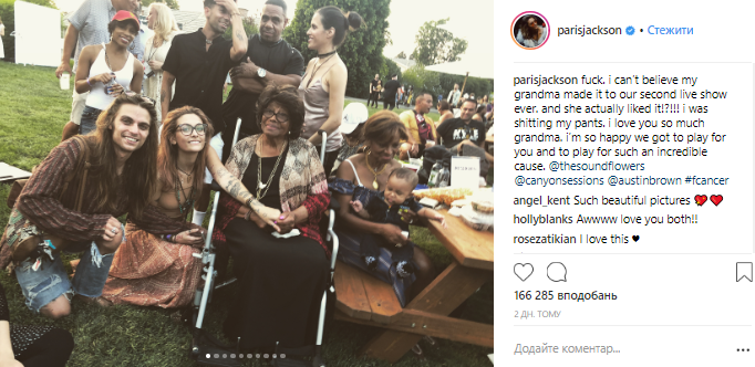 Несмотря на операцию, на следующий же день Пэрис Джексон выступила на сцене на благотворительном мероприятии вместе со своей группой The Soundflowers.